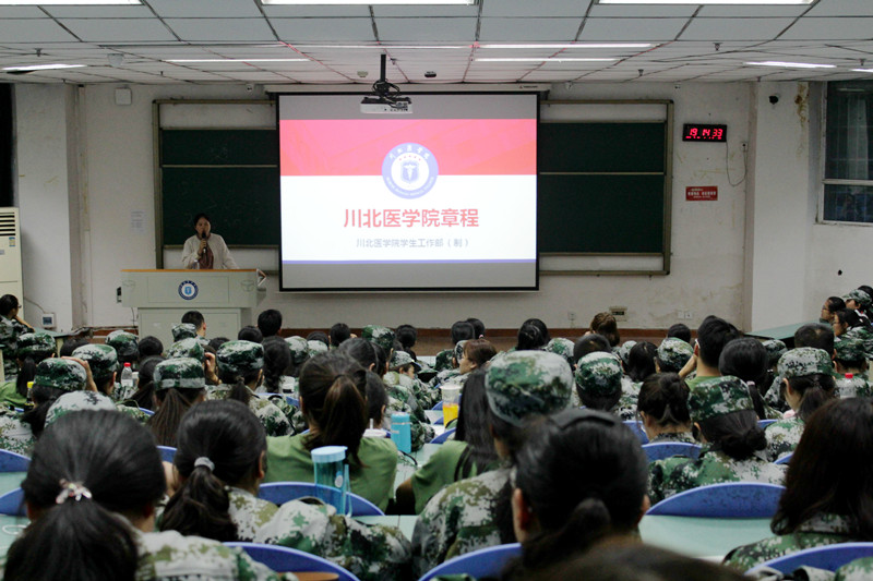 为促进新生了解学校规章制度,更快融入大学环境,9月11日晚,全校3000余名新生在军训各连指导员的引导下学习校规章程、观看学校宣传片,感受到了川北医人蓬勃向上的精神。