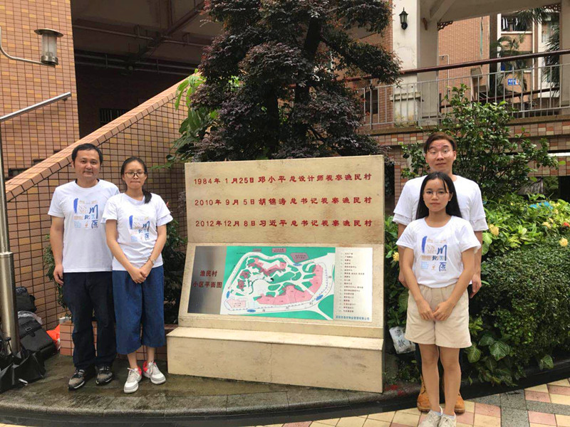 小分队由陈卫星老师和临床医学专业2015-2017级5名学生代表、1名2018级新生代表组成,在深圳完成了三个版块活动。12日上午,小分队赴莲花山瞻仰了邓小平铜像,参观了习总书记手植树---高山榕,再到习总书记和邓小平同志、胡锦涛同志都曾到访的罗湖渔民村进行走访交流活动。在渔民村,师生参观了村史博物馆,和本地居民、外迁户进行了交流,了解了这个中国第一万元户村的变迁和发展以及深圳经济特区改革开放的辉煌成就和巨大变革,领略了为纪念习近平2012年12月到访而建的“近民亭”所彰显的总书记“亲民、随和、坦诚”的风范。