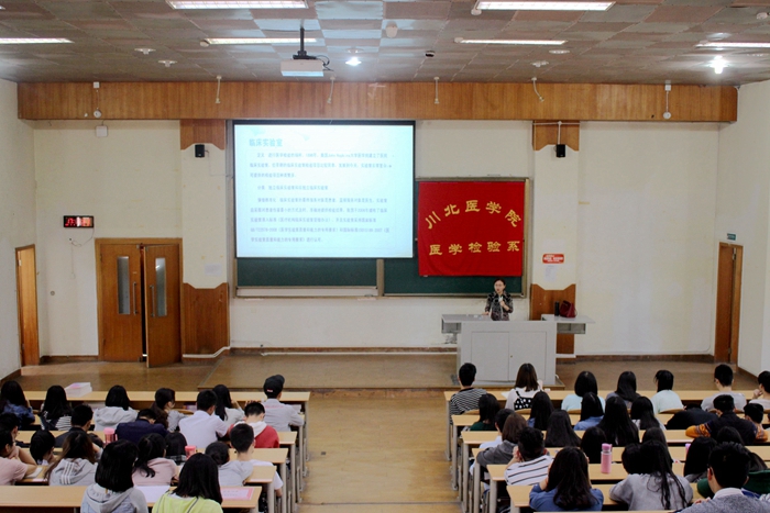 邢教授从“检验的本质”、“检验的项目”、“检验的重要性”、“未来的就业方向” 以及“医学检验的职业伦理”等方面和同学们进行了深入而愉快的交流。邢教授说,医学检验是一门多学科交叉的应用性学科,对疾病的临床诊断、治疗监测提供依据。随着临床诊断的发展和检测仪器的自动化水平不断提高,第三方检验正在兴起,发展前景可观,医学检验在临床中也将更受重视。相应的,人才需求的变化必将对医学检验教育提出了更高的要求。这就需要同学们在校认真学习理论知识,积极提高实践操作技能。此外,邢教授还分享了自己的成长经历与工作心得,鼓励同学们珍惜青春时光、把握求学机会,学会做人、学会做事,服务社会,成就自己,做新时代优秀的医学检验人。