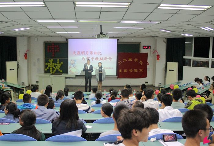 “天涯明月常相忆,为贺中秋赋新诗。”为迎接八月中秋的到来,让学生领略古代诗词的艺术魅力,9月29日晚,医学检验系于我校高坪校区图书信息大楼207教室举办了中秋诗词大赛。该系2017级班主任代表、长歌青衫国学社副会长谢瑶环、国学社宣传部部长刘金华应邀出席并担任评委。
