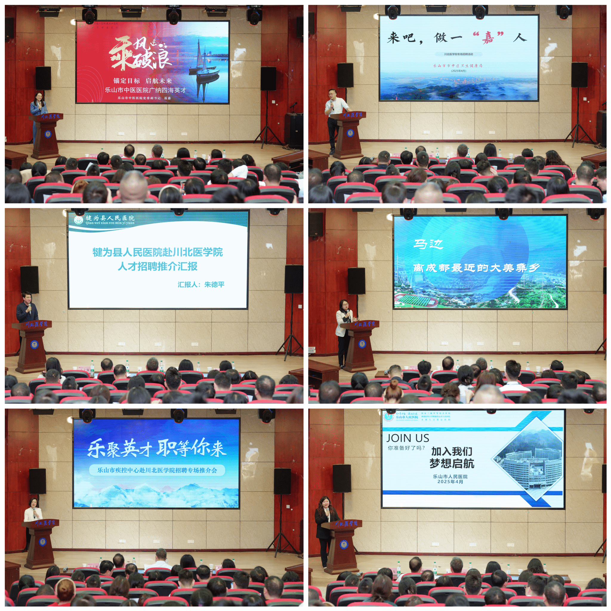 会上,与会人员共同观看了乐山市宣传片,了解了乐山的风土人情、发展成就以及医疗卫生事业的广阔前景。邓世山在致辞中对乐山市卫生健康系统同仁的到来表示热烈欢迎,希望双方能够借此机会深化合作,共同为培养高素质医疗卫生人才贡献力量。曾伟作了人才招引推介,他详细介绍了乐山市卫生健康系统的基本情况、发展前景以及人才引进政策,诚挚邀请我校优秀毕业生加入到乐山卫生健康事业大家庭。市中医医院、市中区卫健局、犍为县人民医院、马边县人民医院、市疾控中心、市人民医院等单位分别进行了引才宣介,分享了各自单位的工作环境、发展前景以及人才成长路径,让与会师生对乐山市卫生健康系统有了更加全面深入的了解。