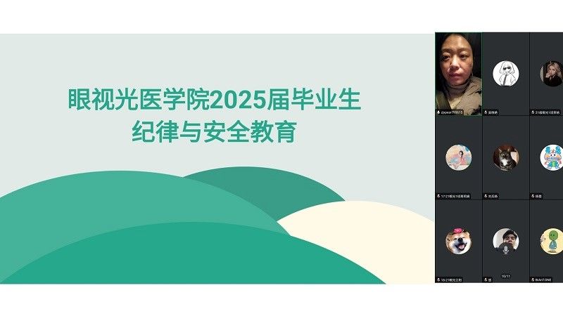 为进一步提升实习生纪律与安全防范能力,2024年12月13日,眼视光医学院开展了“纪律与安全”线上专题教育,旨在强化实习生实习纪律和个人安全意识。