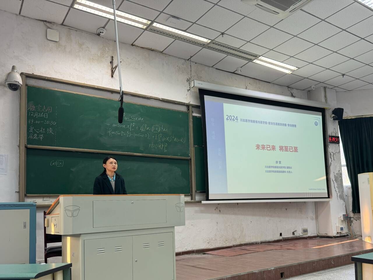 为帮助学生明晰未来职业发展方向,了解行业发展前景,合理规划学业与职业发展路径,进一步做好职业生涯规划。12月16日,眼视光医学院副院长廖萱教授,在高坪校区图信楼402为该院2024级全体新生带来了一场生动的生涯规划讲座。