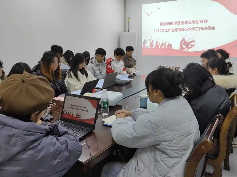 2025年2月26日,下午7时,眼视光医学院学生工作各部门在顺庆校区学院会议室召开了2024年工作总结会暨2025年工作动员会。会议由眼视光医学院团总支书记张晶昕主持,眼视光医学院学生党支部书记、学生科科长曾兰,学生会各部门、易班以及志愿队负责人参加。