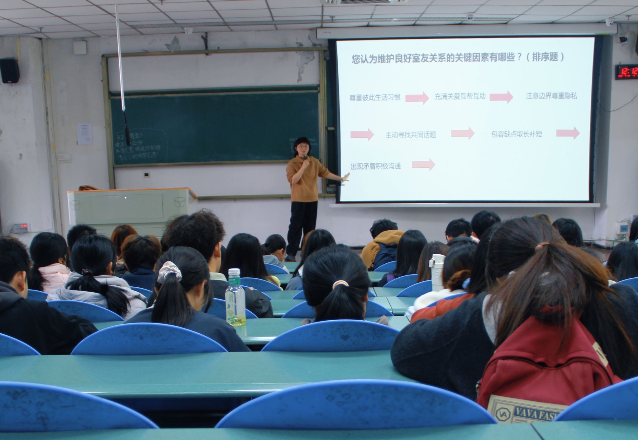 讲座还增设室长专题座谈会,针对调查中反映的突出矛盾进行案例剖析,同时,结合数据指出,大部分的寝室问题源于规则缺位,要求室长牵头制定个性化室规,建立“问题反馈-集体协商-动态调整”机制,增进成员间协作,共建和谐寝室。