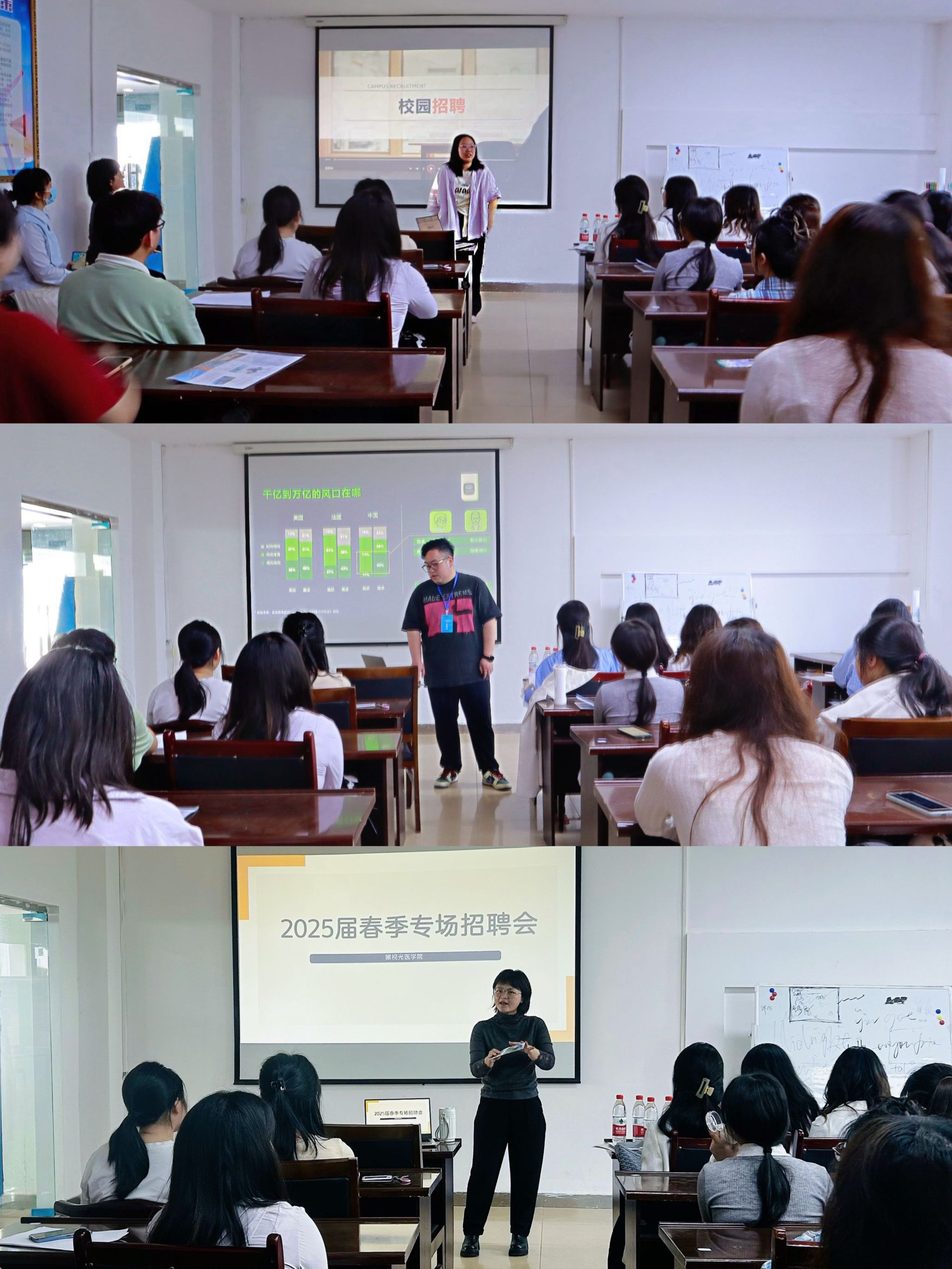 招聘会伊始,两家企业代表先后登台,向在场学生介绍了公司的发展概况、招聘岗位、薪资福利及职业晋升路径。辅导员曾兰就当前视光行业的就业趋势进行深入剖析,她鼓励同学们转变就业观念,主动把握招聘机会,尤其是基层医疗单位和新兴医疗产业。她强调,在就业竞争激烈的当下,同学们应积极主动了解行业行情,对照自身条件,明确差距,认真开展职业规划,有针对性地提升自我,以获得用人单位青睐顺利就业。