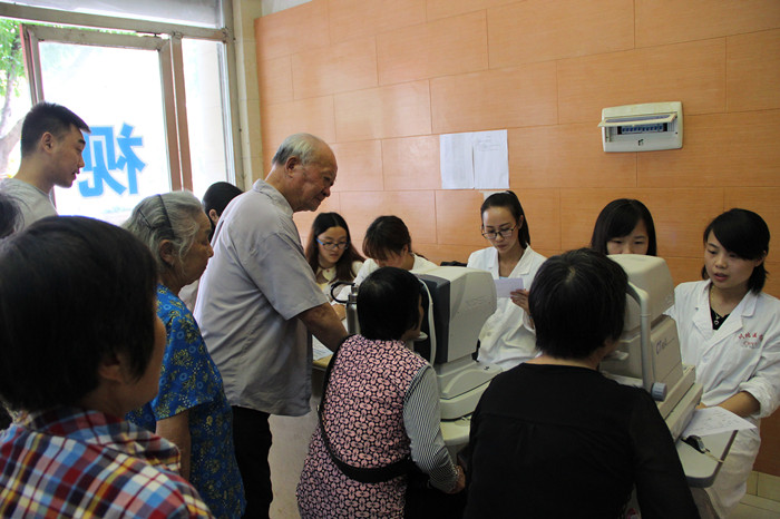 此次活动以“告别沙眼盲,关注眼健康”为主题,主要分为视力检测、眼部裂隙灯检查、眼底检查、儿童色觉及立体视检查四个部分。三天时间里,眼视光学系教师和附院眼科医生带领眼视光学系学生共免费为500余名市民进行了眼部疾病筛查,提高了广大群众对眼部健康问题的重视。