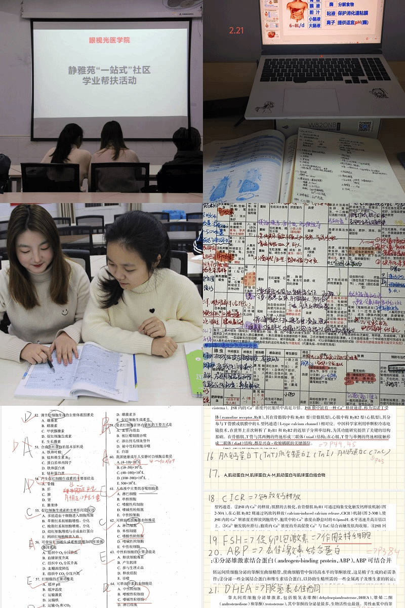此次学习活动以线上网络平台和线下静雅苑“星火”党建工作室为平台,分为自习打卡、答疑解惑和经验分享三个环节,由党员和入党积极分子精心策划、全程指导,充分发挥党员先锋模范作用。学生根据补考科目结成学习小组,围绕各学科重难点展开学习活动。参与同学主动分享个人笔记、整理高频考点,通过错题分析、知识点梳理等方式互相指导。活动还发起“学习伙伴”计划,鼓励学生跨班级、跨年级组队复习,建立日常监督打卡机制,形成长效帮扶模式。“生理学血液循环部分我一直没学懂,但小组同学用实例帮我理清了思路,还分享了速记口诀,复习方向更明确了!”2023级学生胡某在活动中收获颇丰。多名参与学生表示,互助形式缓解了独自复习的压力,小组讨论有效提升了学习效率。