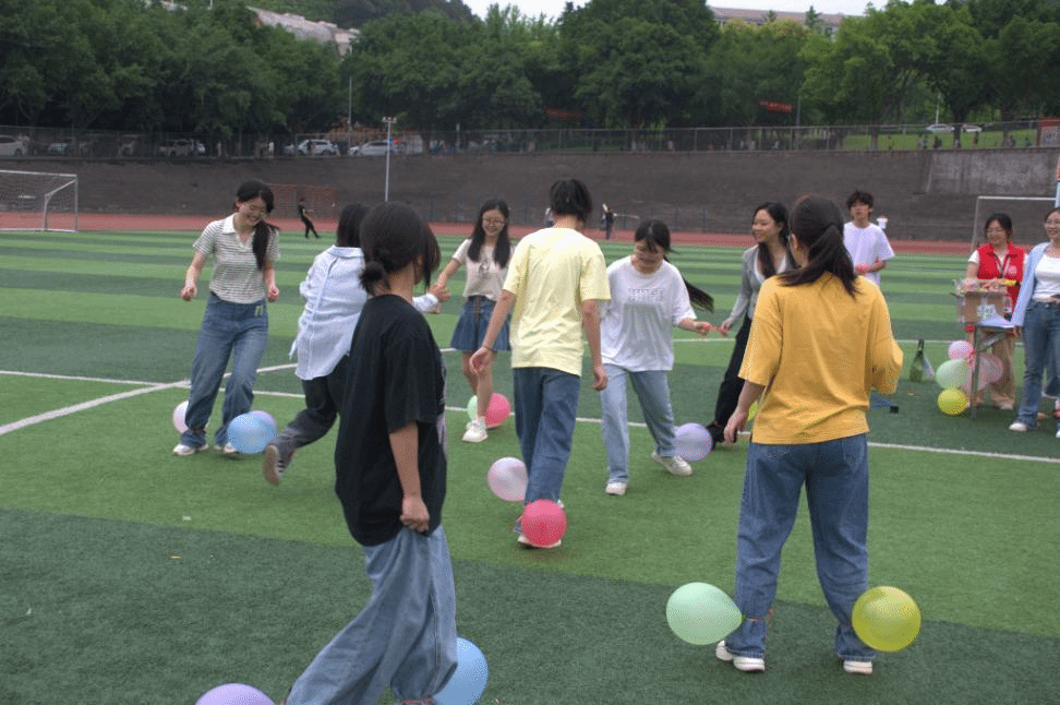 下午5时,参赛队伍从图书馆广场出发,踏上实现青春之约的跑道。活动创新融入团队协作与心理拓展元素:“踩气球”关卡要求队员在保护己方气球的同时突破对手防线,考验策略与默契;“盲盒交友坊”通过随机组队完成指定任务,促进跨学院学生交流;“听歌识曲”环节结合医学人文主题,选取《生僻字》《本草纲目》等曲目,展现同学们的音乐才华;心理“飞行棋”关卡设置情绪管理、压力应对等情景问答,学生在游戏中掌握实用心理调适技巧。活动现场氛围热烈,青春活力肆意飞扬,最终评选出一等奖队伍1支,二等奖队伍3支,三等奖队伍5支。