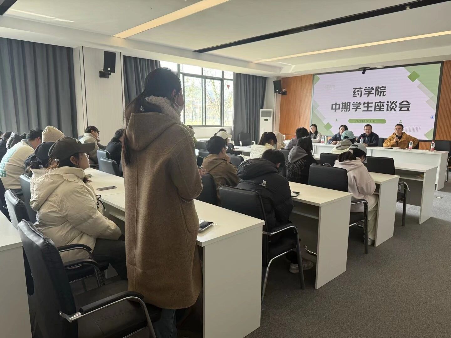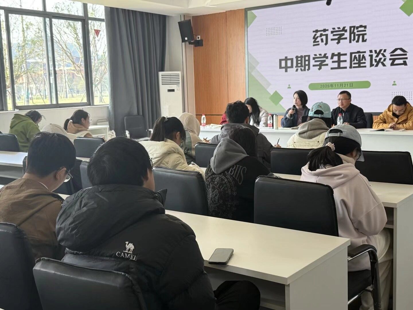 11月21日上午,药学院在松林书院三号楼南103会议室召开2025年秋季学期期中学生座谈会。药学院党总支书记、院长张帆、党总支副书记冯莉苹、教务科科长于春雷,学生科辅导员及50余名学生代表参会。