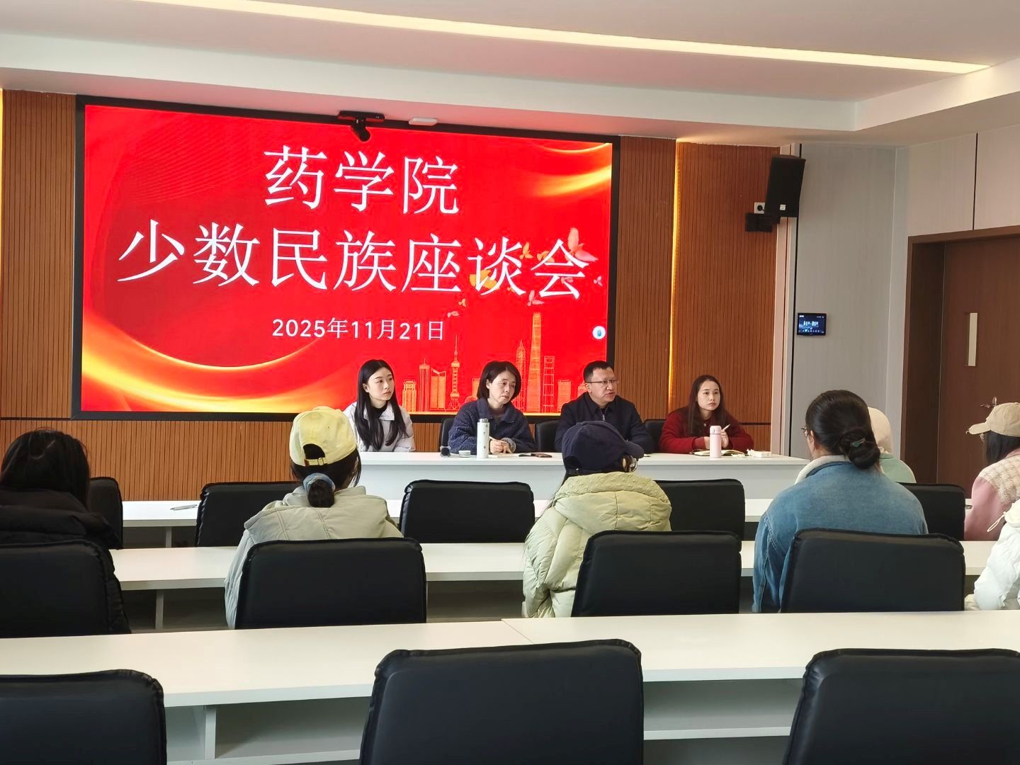 11月21日上午,药学院在松林书院三号楼南103会议室召开少数民族学生座谈会。药学院党总支书记、院长张帆、党总支副书记冯莉苹、学生科辅导员、各年级来自彝族、藏族、维吾尔族等少数民族学生代表共20余人参加了座谈会。