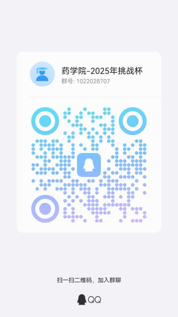 鼓励学院所有符合条件的本科生、研究生以个人或集体积极参赛,活动咨询与交流可加群了解(QQ群:1022028707,药学院-2025年挑战杯)。