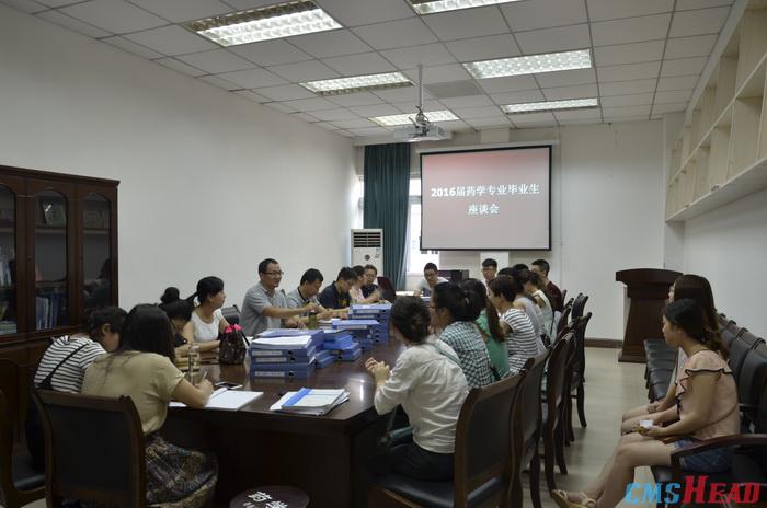 座谈会上,周春阳首先代表学院对同学们顺利完成大学四年的学业并即将顺利毕业表示祝贺,并希望同学们够畅所欲言,为药学院的管理、教学、实习等工作提出宝贵意见和建议,为完善药学院各项工作并进一步提高在读同学培养质量等积累宝贵经验。随后,师生之间就药学专业课程设置、毕业实习、毕业论文、大学生活及就业等方面进行了交流。最后,周春阳对座谈会进行了总结,感谢同学们座谈中对学院教学、毕业实习等学生培养工作的提出的中肯的意见和建议,勉励同学们在今后的学习、工作和生活中继续努力,不断进步,勇于担当,做对国家、对社会有用的人。他还希望同学们今后多回母校看看,并表示药学院将进一步加强同毕业同学的联系,做好校友工作。