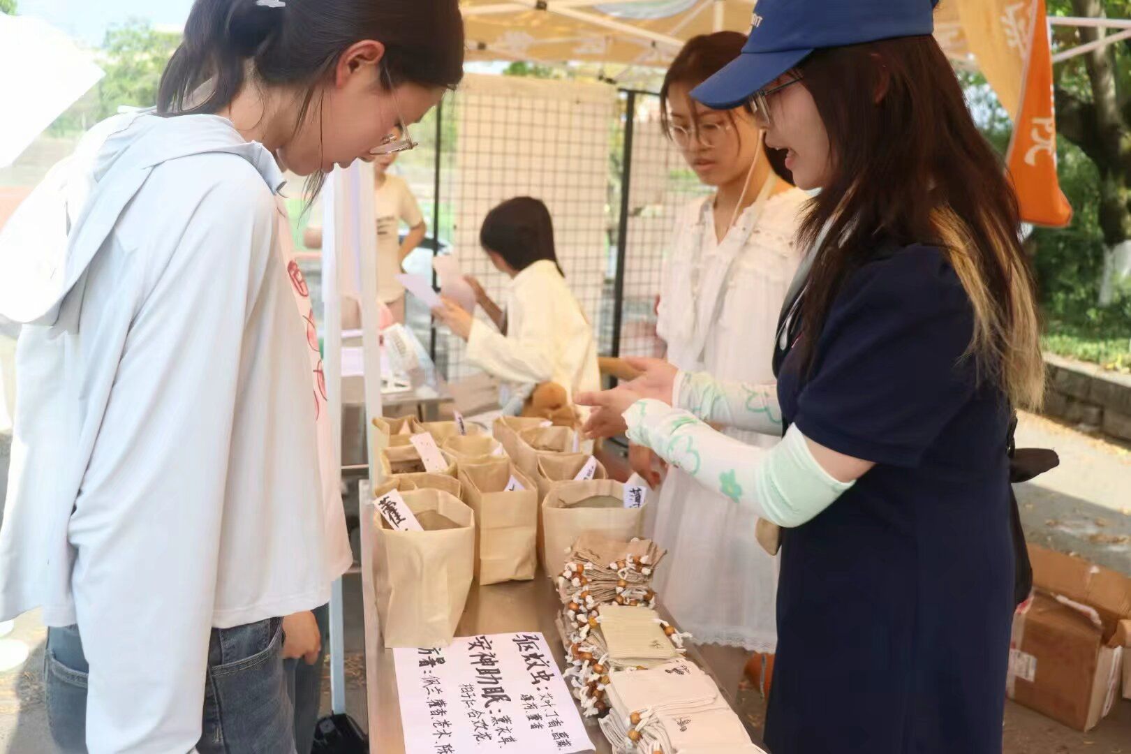 活动现场的互动体验区始终洋溢着欢声笑语。在识药辨效专区,参与者通过"观形色-辨气味-记功效"三步学习法快速掌握药材知识后,随即展开限时竞答比拼。药学院李同学凭借对10种药材功效的准确记忆摘得桂冠,赢得现场阵阵掌声。与此同时,古法香囊制作区飘散着艾叶与丁香的芬芳,师生们在工作人员的指导下,制作出兼具功效与审美价值的个性化香囊。