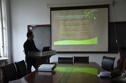 何冠军同学从研究背景、研究目的、实验方案、技术路线等方面对动脉粥样硬化与Hhcy、H2S相关性做了报告。报告会后,在座的老师及同学对实验方案中相关内容进行了热烈的讨论,并提出了许多改进的方法。