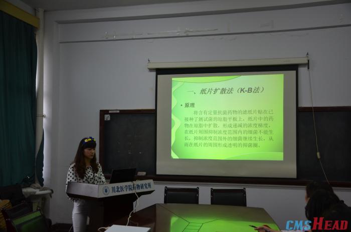 6月24日下午,药理学2013级研究生刘姣在药物研究所会议室作了题为《抗菌药物敏感性实验与细菌耐药性检测》报告。 药学院部分专业教师和药理学专业研究生到场参加。