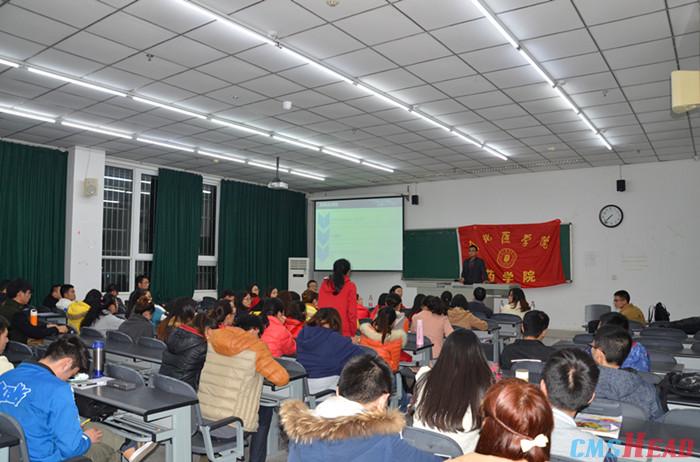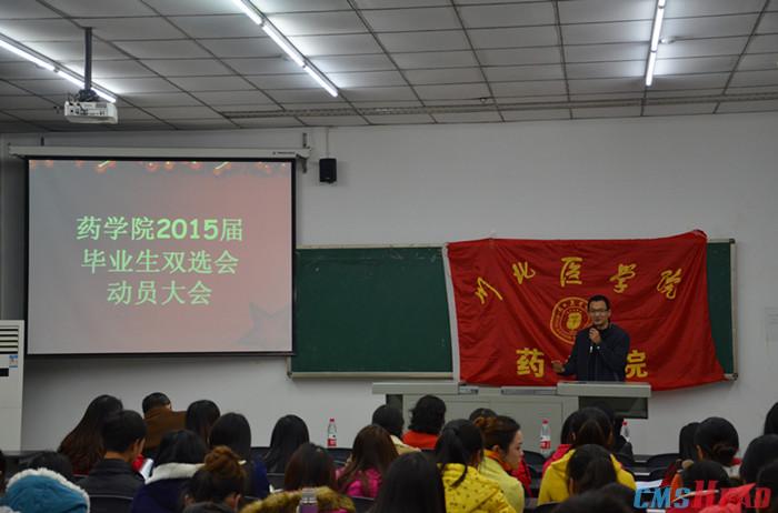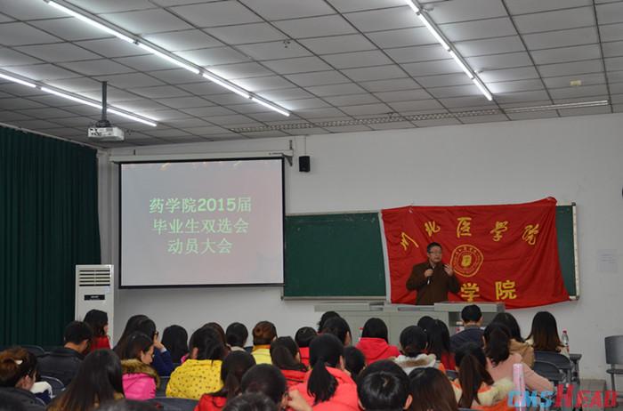 为进一步丰富药学专业首届毕业同学求职经验,做好就业相关准备,11月19日晚,药学院在图书信息楼105教室举行了2015届药学专业毕业生双选会动员大会。药学院院长周春阳、副院长刘福、部分教师、药学专业2011级全体同学参加了此次动员会。学校招生就业处杨雪梅老师,美国辉瑞公司川北地区经理余晓理应邀参加。