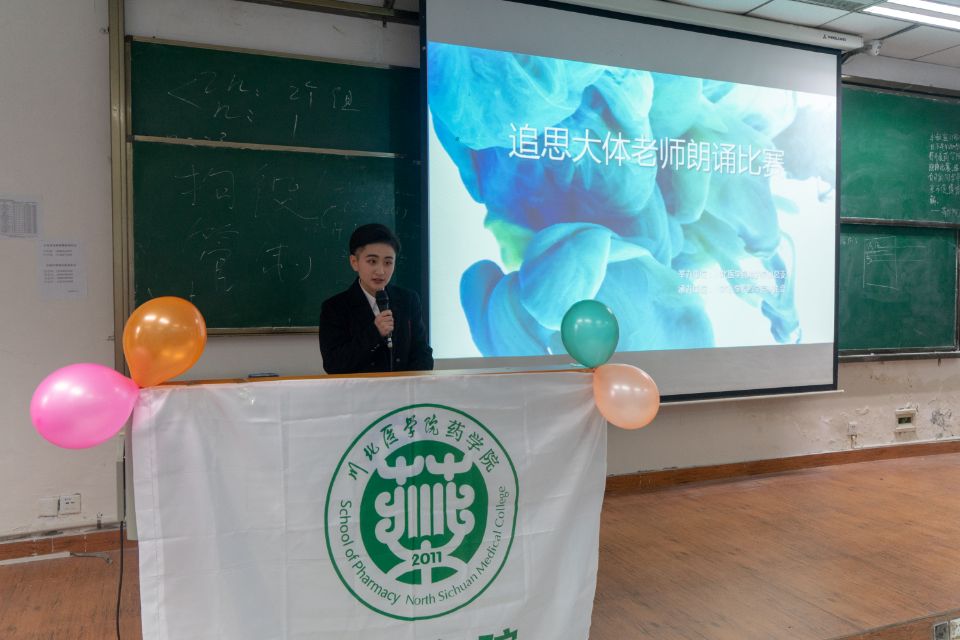 11月24日下午14点30分由川北医学院药学团总支举办、川北医学院药学院学生会承办的“追思大体老师朗诵比赛”在图书信息大楼102顺利开展,药学院2017、2018级全体学生参加了本次活动。