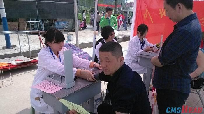 活动现场,同学们结合日常生活实例,通过做问卷调查,中药饮片展示、三高食谱宣传以及血压测量等形式向群众宣传用药知识,并对部分血压、血脂、血糖较高的群众给出了关于生活饮食方面的建议。