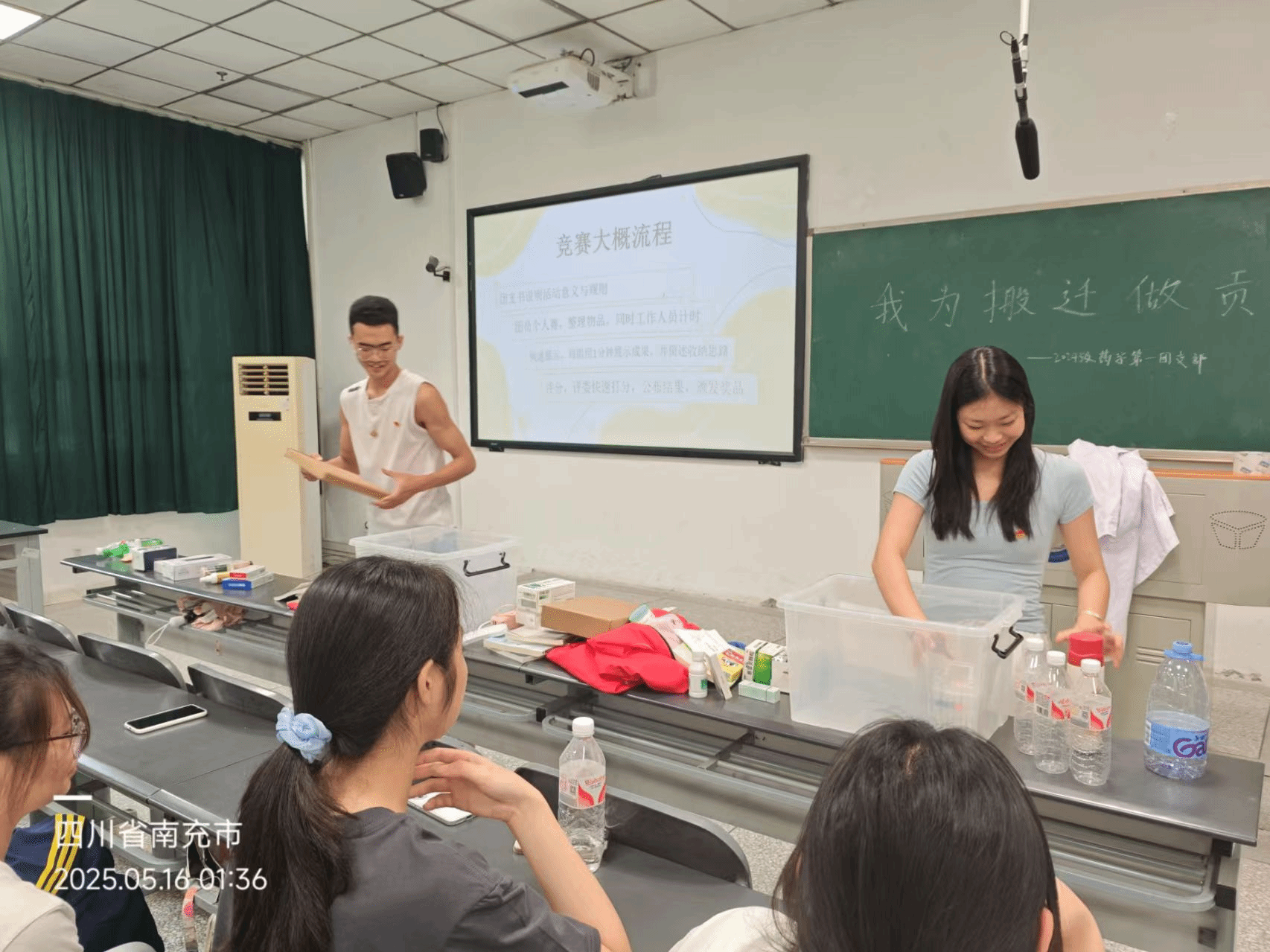 5月16日,药学院2024级药学第一团支部开展“我为搬迁做贡献”主题团日活动,通过知识普及与实践演练相结合的方式,营造良好的校区搬迁氛围。