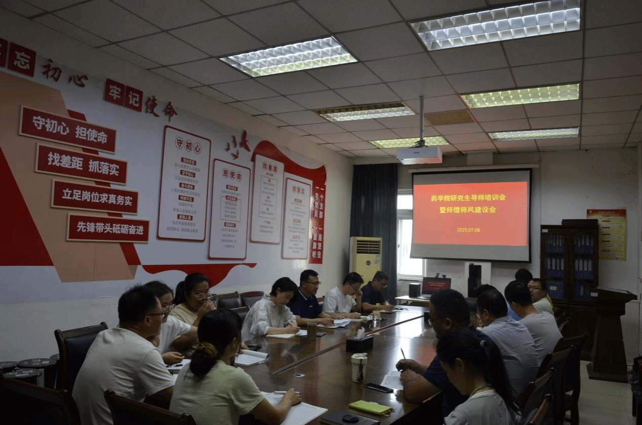 药学院聚焦导师队伍建设关键环节,于2025 年 7 月 8 日下午,在学院会议室组织召开 2025 年研究生导师培训暨师德师风建设会。本次会议旨在强化导师立德树人职责,提升学院研究生培养质量,新招生导师与 2026 届毕业年级导师齐聚一堂,共同参与学习研讨。