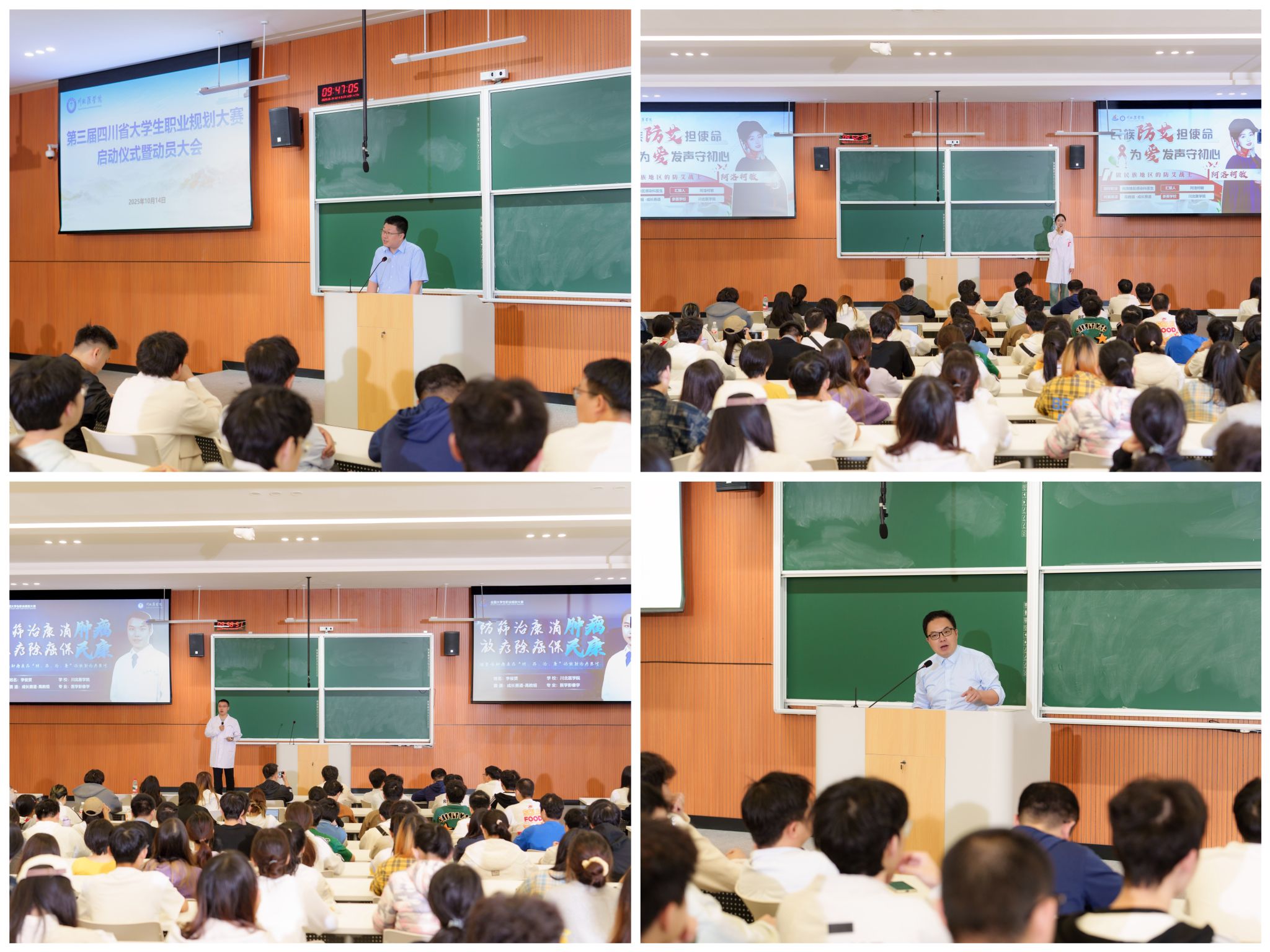 10月14日上午,川北医学院2025年大学生职业规划大赛启动仪式暨动员大会在临江校区博济楼东101教室顺利举行。本次活动由学工部主办,药学院与公共卫生学院联合承办,吸引了来自全校各院系的200余名师生共同参与。