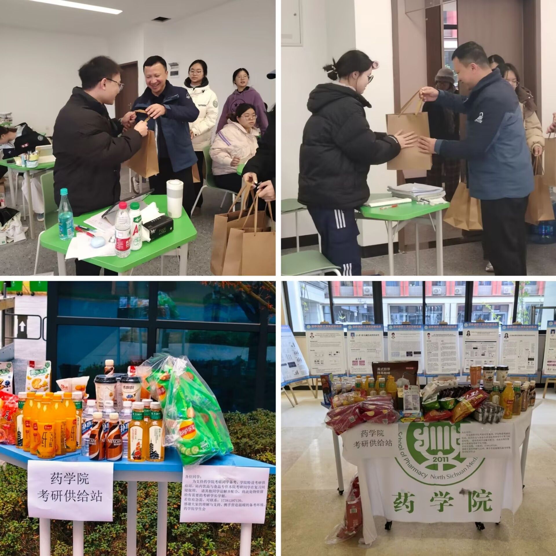 药学院聚焦学子实际需求,在学院学生所在的各宿舍楼下设立“考研能量补给站”,为学子提供物质支持与精神激励,助力他们以饱满的姿态迎接考试。“考研能量补给站”免费提供面包、饼干、咖啡等能量补给品,满足学子在紧张复习期间的体能需求。学院组织志愿者团队定期补充物资、维护环境,确保补给站长期整洁有序、物资充足,使其成为寒冬中一道传递温度、凝聚力量的校园风景,彰显学院细致入微的人文关怀。