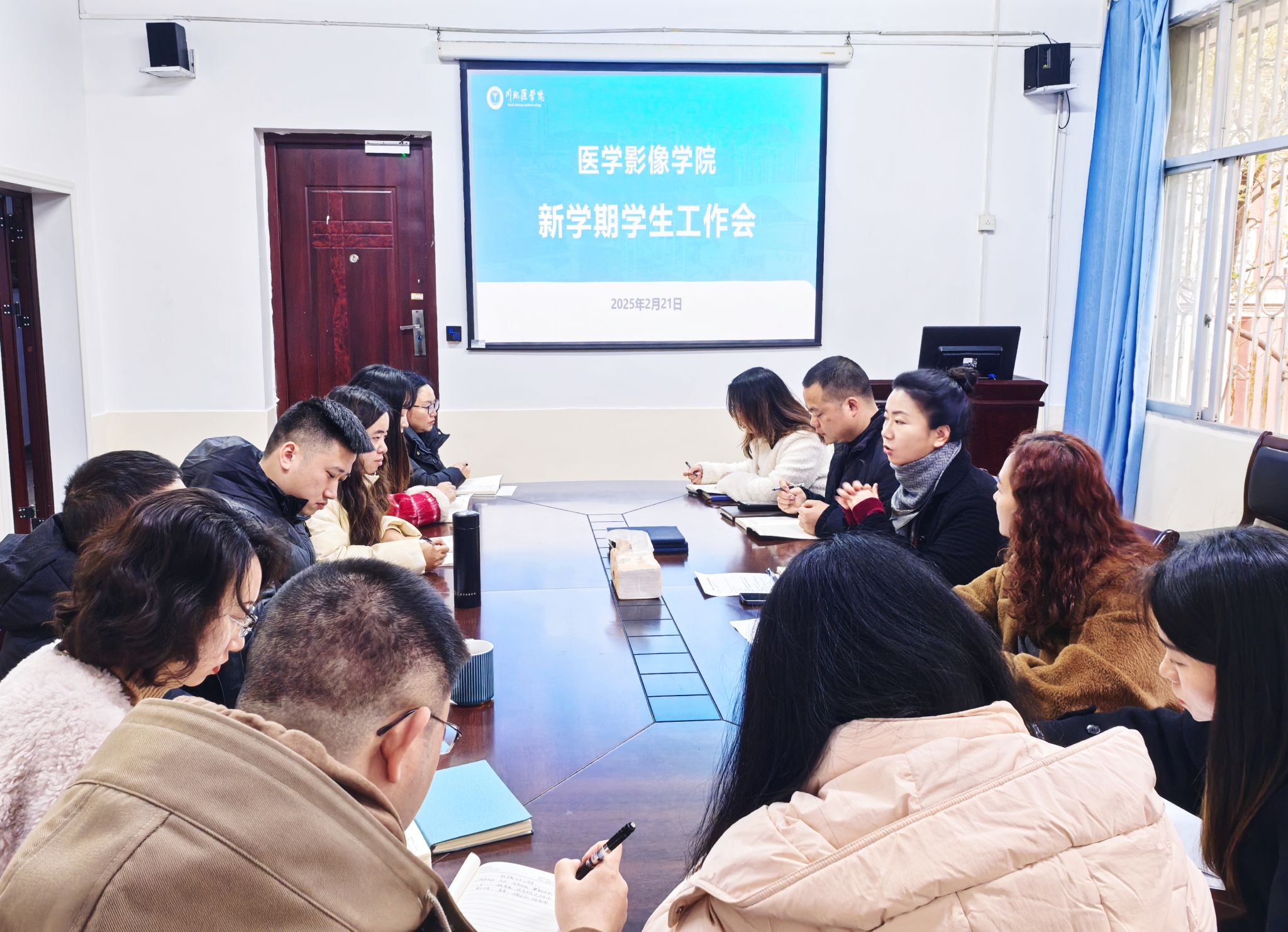 新学期,新气象,新征程。为统筹推进学院新学期重点工作,确保学生工作开好局、起好步,2月21日下午,医学影像学院在学校顺庆校区思源楼二楼会议室召开2025年春季学期学生工作部署会议,医学影像学院党委书记夏榕、党委副书记庞娟及全体辅导员参加会议。会议由学生科科长黄正宽主持。