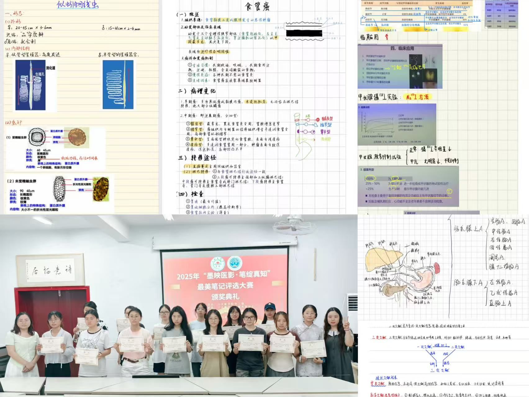 大赛立足学院人才培养实际,分设“研途筑梦”(高年级组)和“学术精进”(低年级组)双赛道。“研途筑梦”赛道聚焦考研升学,通过优秀笔记传承备考经验,“学术精进”赛道引导低年级学生构建知识体系,夯实专业基础。活动自启动以来,学生投稿踊跃,涌现出解剖手绘图、思维导图、知识树等特色作品,既有彩色标注的重难点解析,更见批注思考的深度学习痕迹,充分彰显影像学子严谨治学的精神风貌。经专业评审团从完整性、逻辑性、创新性等多维度综合评定,最终,“研途筑梦”赛道评选出一等奖1人、二等奖2人、三等奖3人、优秀奖3人;“学术精进”赛道评选出一等奖2人、二等奖6人、三等奖7人、优秀奖11人。