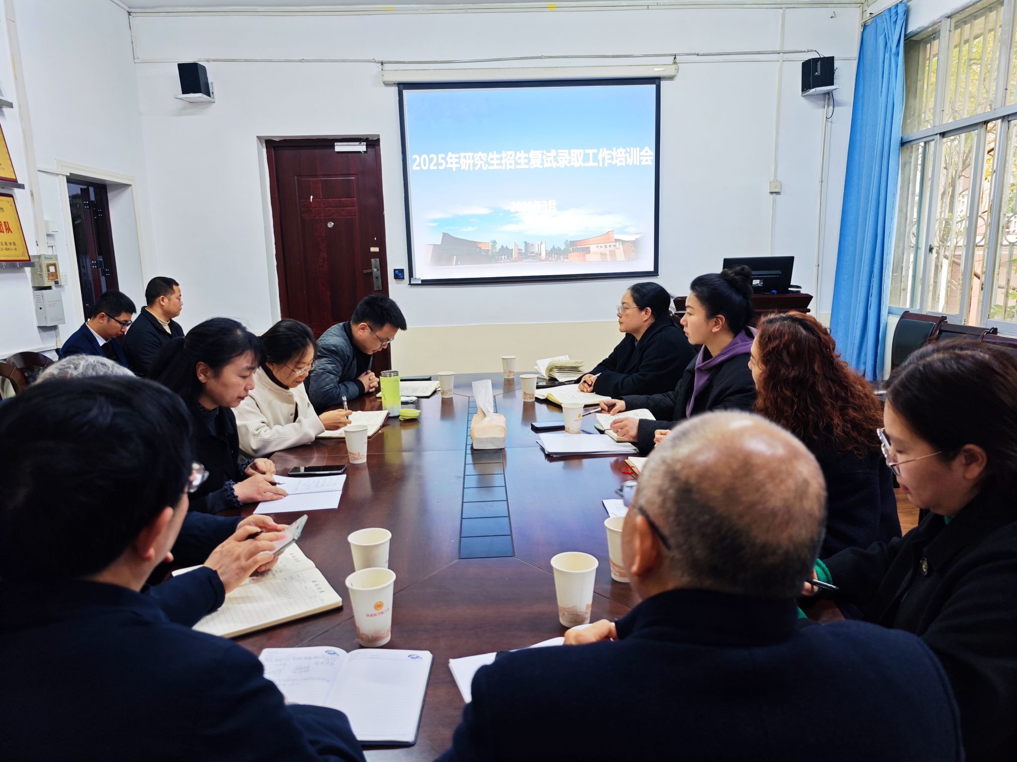 会上,夏榕传达了四川省2025年全国硕士研究生招生复试录取工作部署暨培训会会议精神和学校关于此项工作的相关要求,梳理了往年硕士研究生招生复试工作中曾出现过的问题和疏漏,列举了可能存在的风险和隐患,结合真实的警示案例,提醒大家一定要切实站在“为党育人,为国选才”的政治高度,认识到此项工作的重要性和敏感性,增强责任感和使命感。要坚持综合评价,提升招生质量;要坚持严格管理,确保公平公正;要优化复试办法,强化统一管理;要规范试题纪律,严防违纪舞弊;要坚持以人为本,提升服务质量;要强化风险研判,做好应急处突。