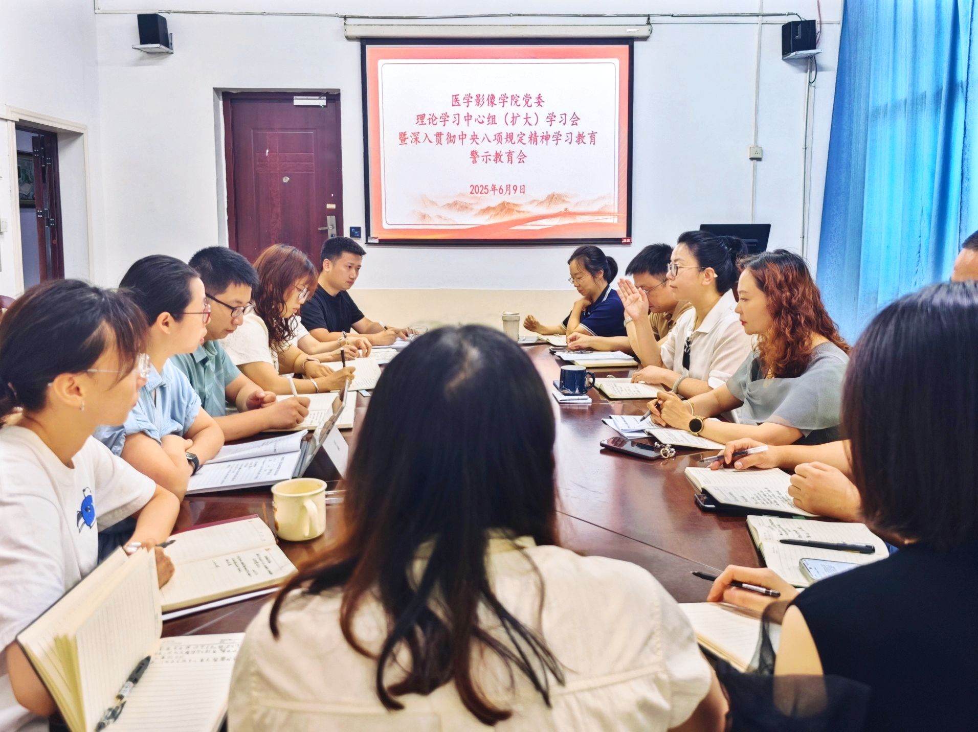 6月9日,医学影像学院在学校顺庆校区思源楼会议室召开党委理论学习中心组(扩大)学习会暨深入贯彻中央八项规定精神学习教育警示教育会。学院党委理论学习中心组成员、专(兼)职组织员、各党支部书记参会。会议由医学影像学院党委书记夏榕主持。