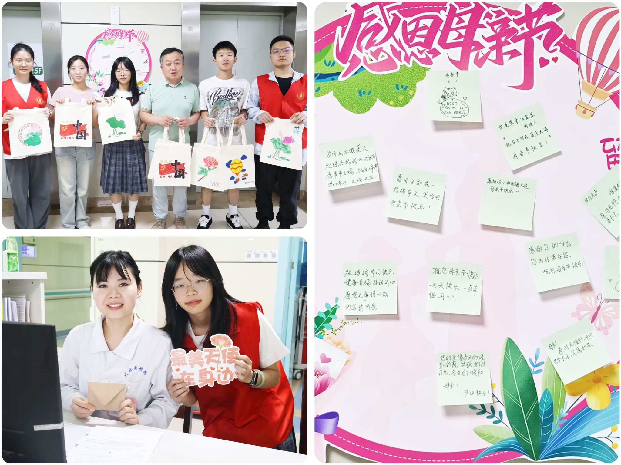 医患共情,艺术疗愈暖双节。5月12日,在附属医院开展的“双节同庆”活动中,志愿者们创新融合护士节与母亲节元素。通过曼陀罗绘画疗愈项目,引导患者在帆布袋上绘制祝福;搭建心形留言墙,收集医患感恩寄语。活动还设置了寓意“生命常青”的多肉盆栽赠送环节,现场播放的母亲节视频引发热烈掌声。
