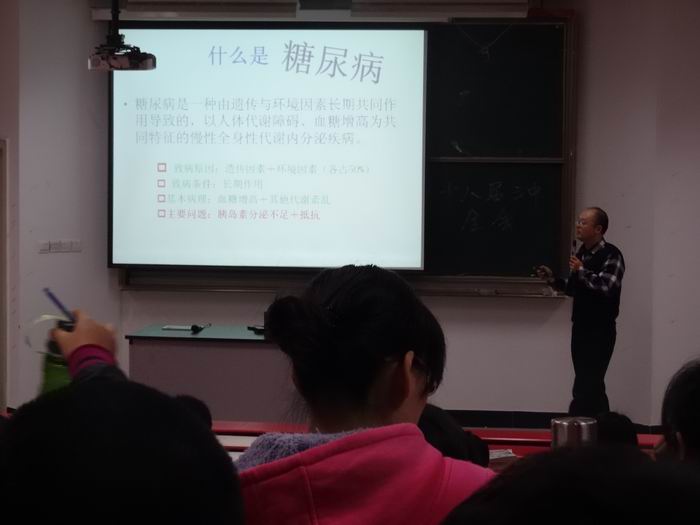 2013年11月23日下午3:00-5:00,在顺庆校区第一教学楼101教室,中西医临床医学系雷枭博士做了题为《糖尿病的中医治疗》的学术讲座。