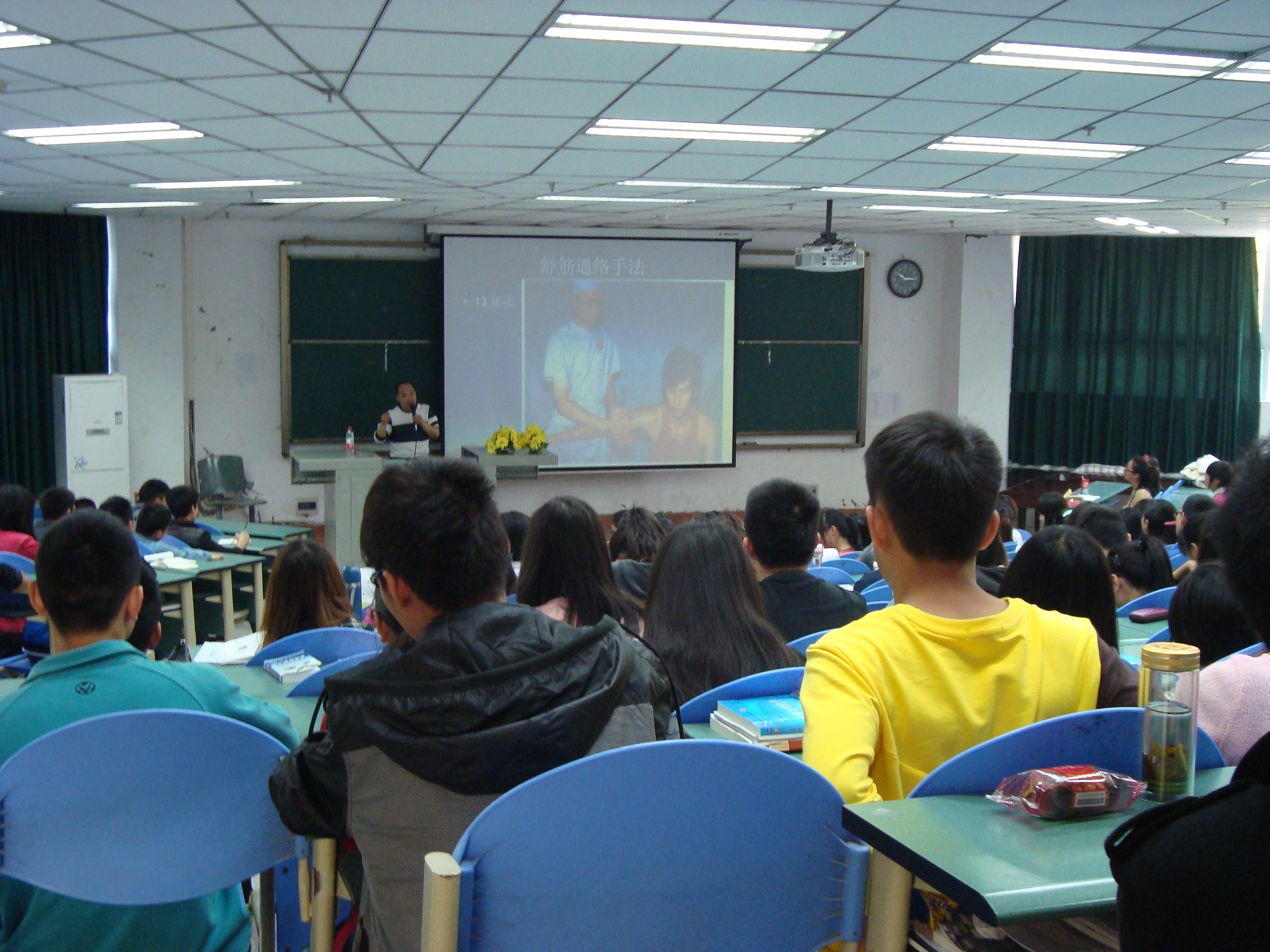 2013年4月14日晚,中西医临床医学系在川北医学院东校区信息大楼102教室举办了“中医推拿按摩知识”讲座。讲座由中西医临床医学系温国伟老师主讲,本院系200多名同学聆听了讲座。