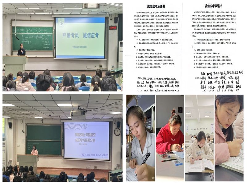二是加强考试诚信教育。学院各年级辅导员充分利用形教课开展考试诚信教育,通过相关规章制度学习、典型案例通报、诚信考试承诺书签署等形式,引导学生严格遵守考风考纪,养成良好的学习习惯。