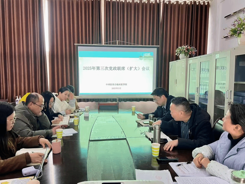 3月7日,中西医结合临床医学院在顺庆校区实验大楼八楼会议室召开了党政联席(扩大)会议,学院党政领导班子、各科室负责人及相关教师代表出席了本次会议。