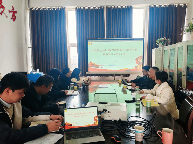 4月1日下午,中西医结合临床医学院党总支于顺庆校区实验大楼八楼会议室召开二级中心组理论学习(扩大)会,学院二级中心组成员及全体党员参加学习,学院党总支副书记邓海英主持会议。