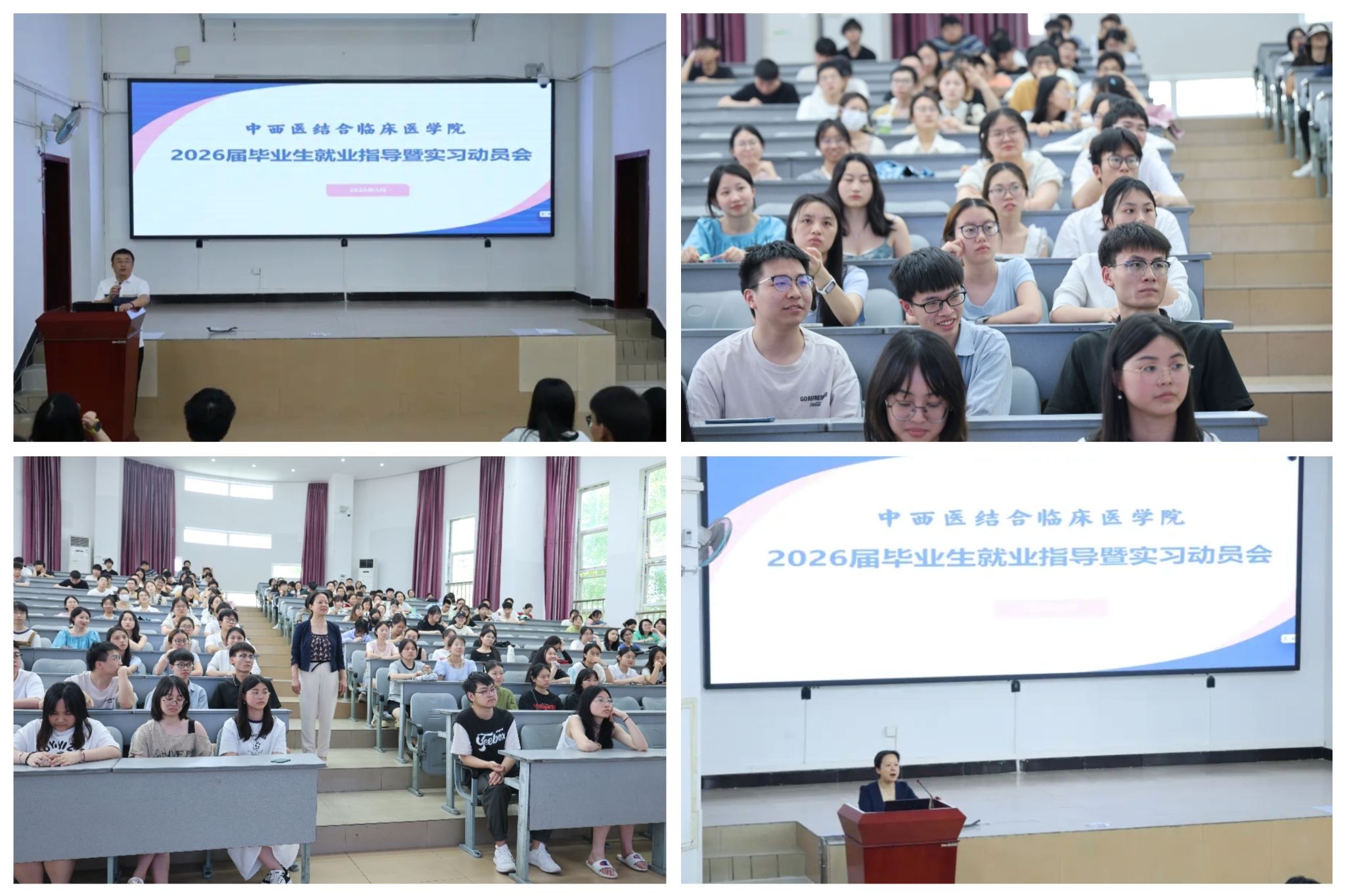 为进一步规范学生实习管理,提升医学人才的培养质量,增强学生就业竞争力,中西医结合临床医学院于5月20日在遂宁市全程教学点D101教室隆重举办了2026届毕业生就业指导暨实习动员会。学院党总支副书记邓海英、学生科全体辅导员以及2021级全体同学均到场参会。此次会议由学生科辅导员张德军主持。
