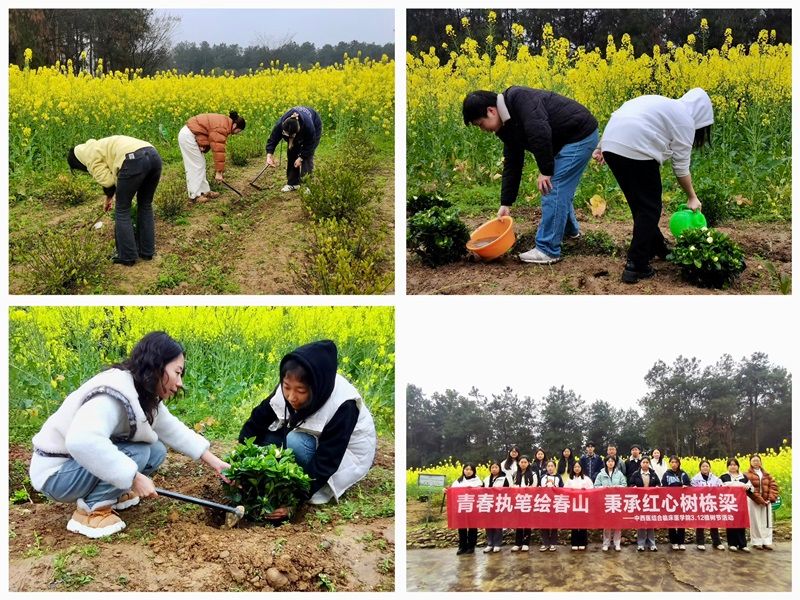 春风送暖,万物复苏,又逢一年植树节。为深入学习贯彻党的二十大精神,践行绿色发展理念,加强大学生劳动教育 ,3月12日上午,中西医结合临床医学院党总支在松林山芳草园开展“青春执笔绘春山,秉承红心树栋梁”植树节活动,该院在校师生党员及2023级入党积极分子参与。