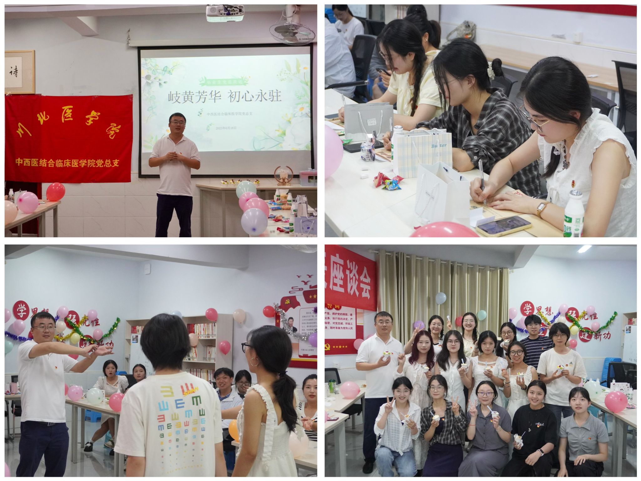 为表达对毕业生党员的诚挚祝福与殷切期望,鼓励他们在新的征程不忘初心,砥砺奋进,中西医结合临床医学院党总支于6月18日 15:00在静雅苑一站式社区举办了“岐黄芳华,初心永驻”毕业生党员欢送会,该院全体在校师生党员参加。