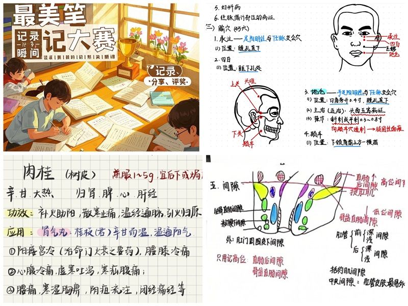 为发挥美育浸润育人功能,加强美育与智育相融合,营造浓厚的学习氛围,促进形成良好学风,近日,中西医结合临床医学院特面向全程教学点学生开展落“笔”生花,厚“记”薄发最美笔记大赛,本次活动得到学生们的积极响应,共收到参赛笔记50份。